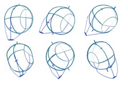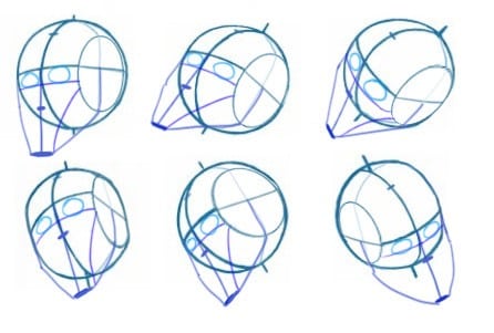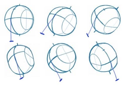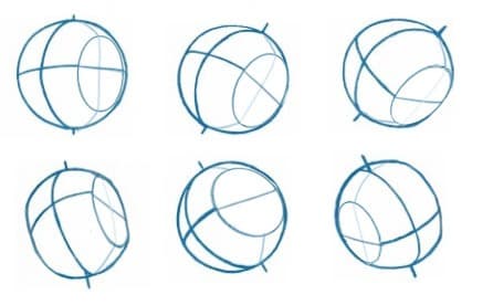 Ces repères permettent de visualiser la tête en volume. Ils servent aussi à placer les sourcils et à diviser le visage de façon équilibrée. En les positionnant correctement, vous facilitez l’alignement de toutes les parties du visage. Une fois cette étape acquise, vous pourrez manipuler la sphère dans l’espace, la tourner, la pencher… tout devient possible.